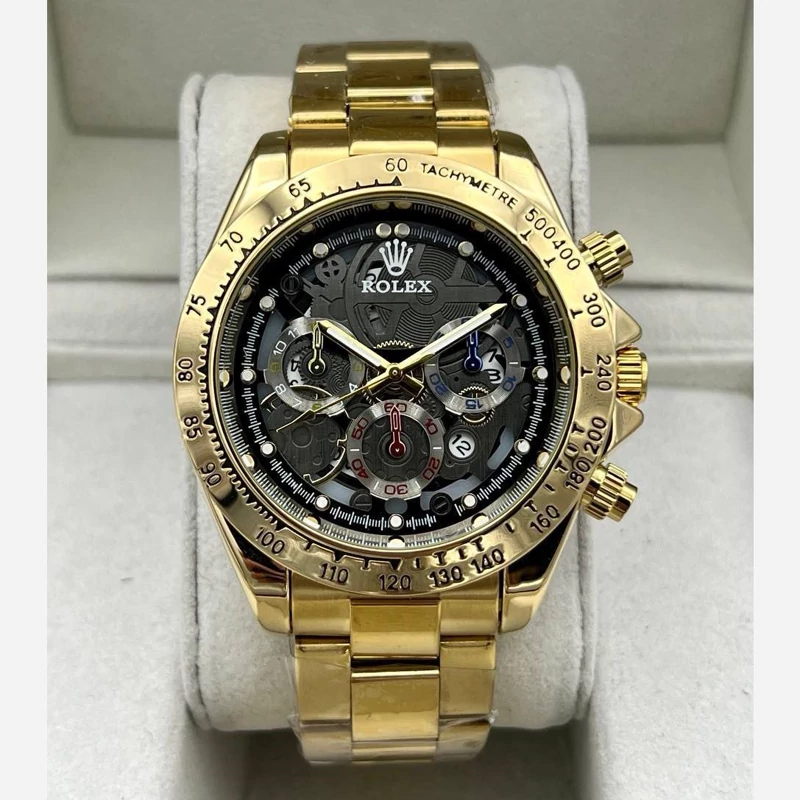 ساعت مچی مردانه رولکس طرح 3 موتوره طلایی مشکی