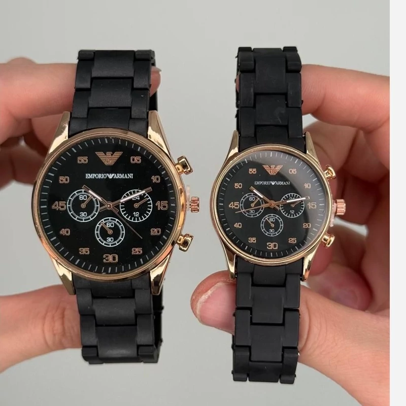 ساعت مچی ست امپریوآرمانی مشکی قاب رزگلد