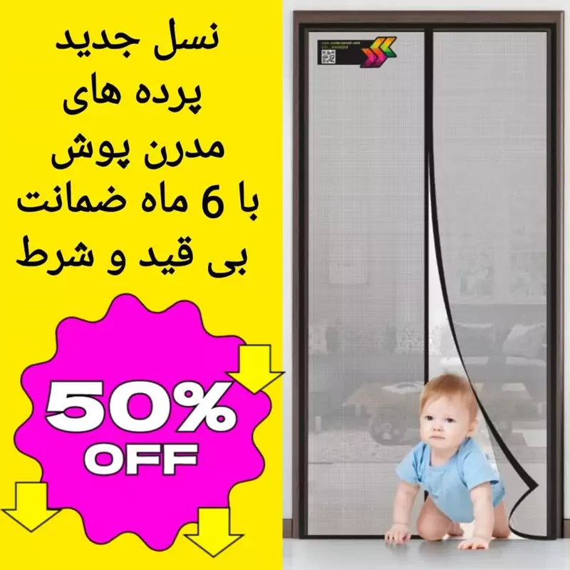 پرده توری مگنتیک عرض80 ارتفاع 210 مگنتی آهنربایی مدرن پوش کد 2248