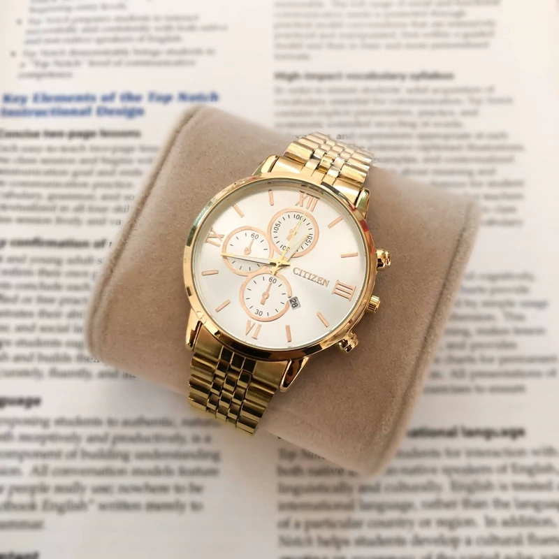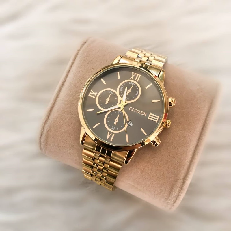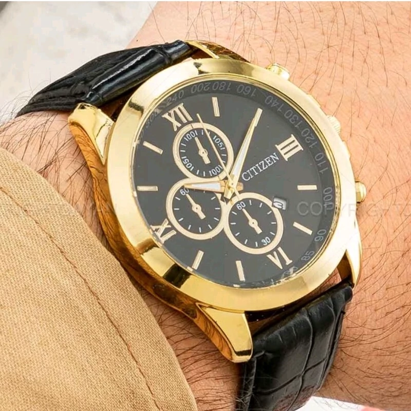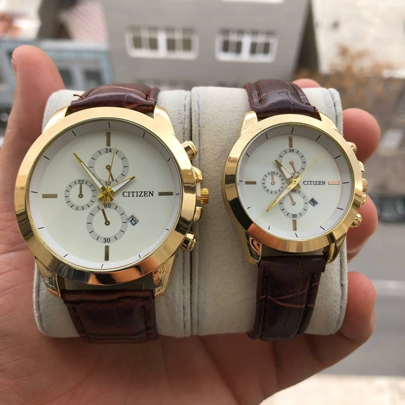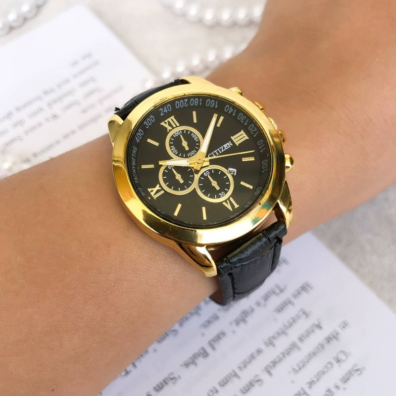 ساعت مچی ست سیتیزن vip قاب طلایی بند چرم