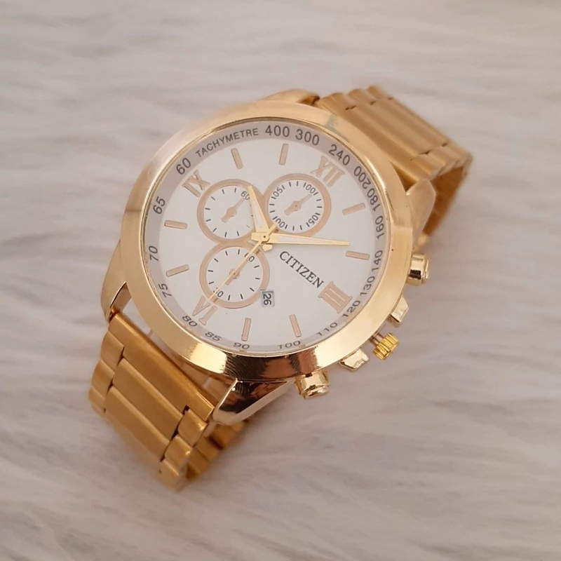 ساعت مردانه سیتیزن بند استیل طلایی صفحه سفید