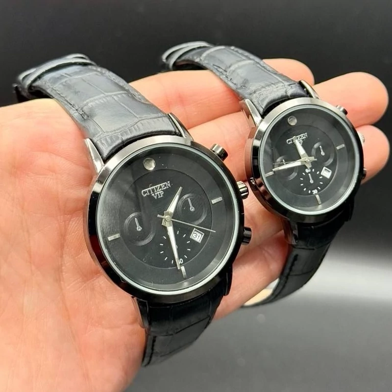 ست ساعت مچی سیتیزن vip بند چرم مشکی