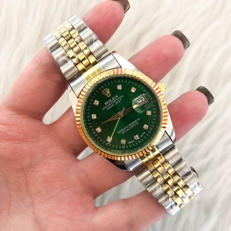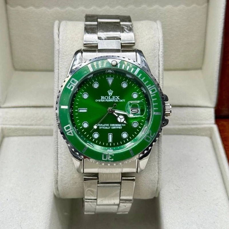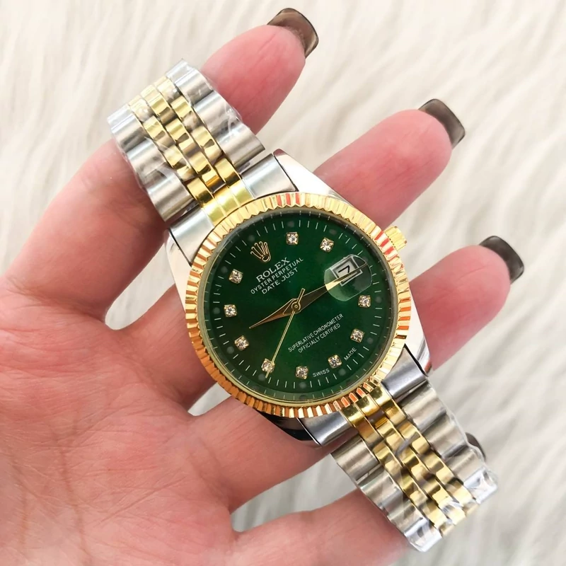 ساعت رولکس مردانه بند دو رنگ صفحه سبز با گارانتی