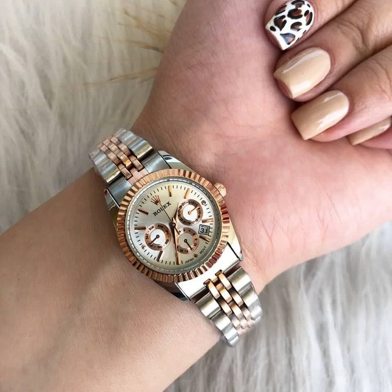 ساعت زنانه رولکس نقره ای رزگلدطرح سه موتوره