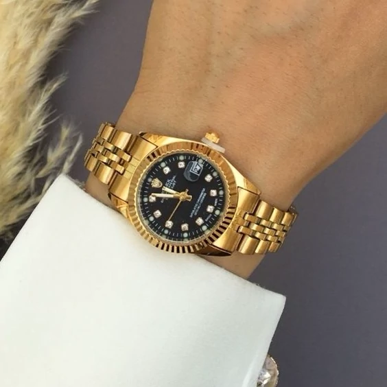 ساعت زنانه رولکس طلایی صفحه مشکی بهمراه گارانتی
