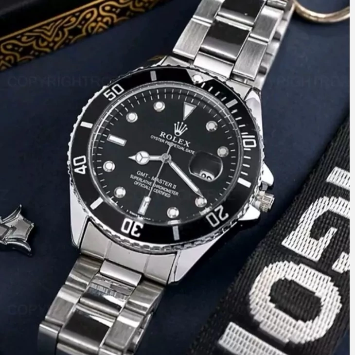 ساعت مردانه رولکس قفل اصلی حک آرم و تاج رولکس روی قفل و پشت قاب ساعت 6 ماه گارانتی موتور