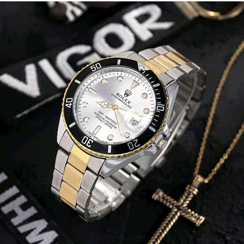 ساعت رولکس مردانه قفل اصلی صفحه اقیانوسی بند دو رنگ 6 ماه گارانتی موتور