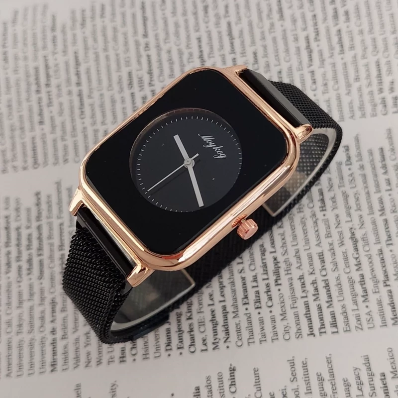 ساعت تاچ(لمسی) طلایی بندمگنتی مستطیلی دو دکمه