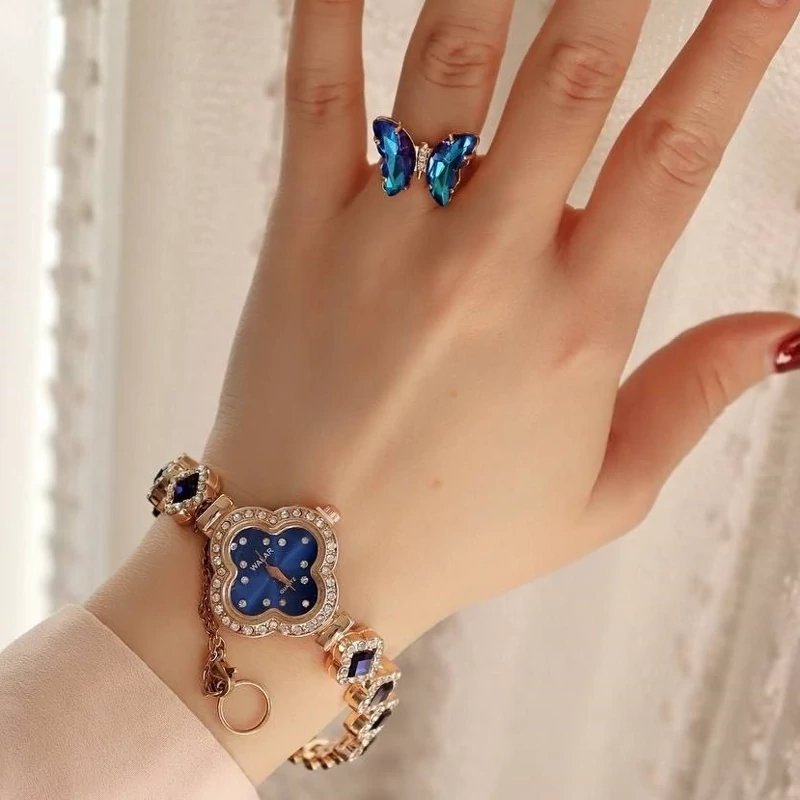 ساعت مجلسی زنانه بهمراه انگشتر پروانه و آویز