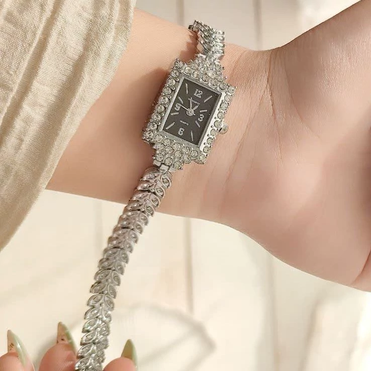 ساعت مچی زنانه ظریف فول نگین صفحه مستطیلی