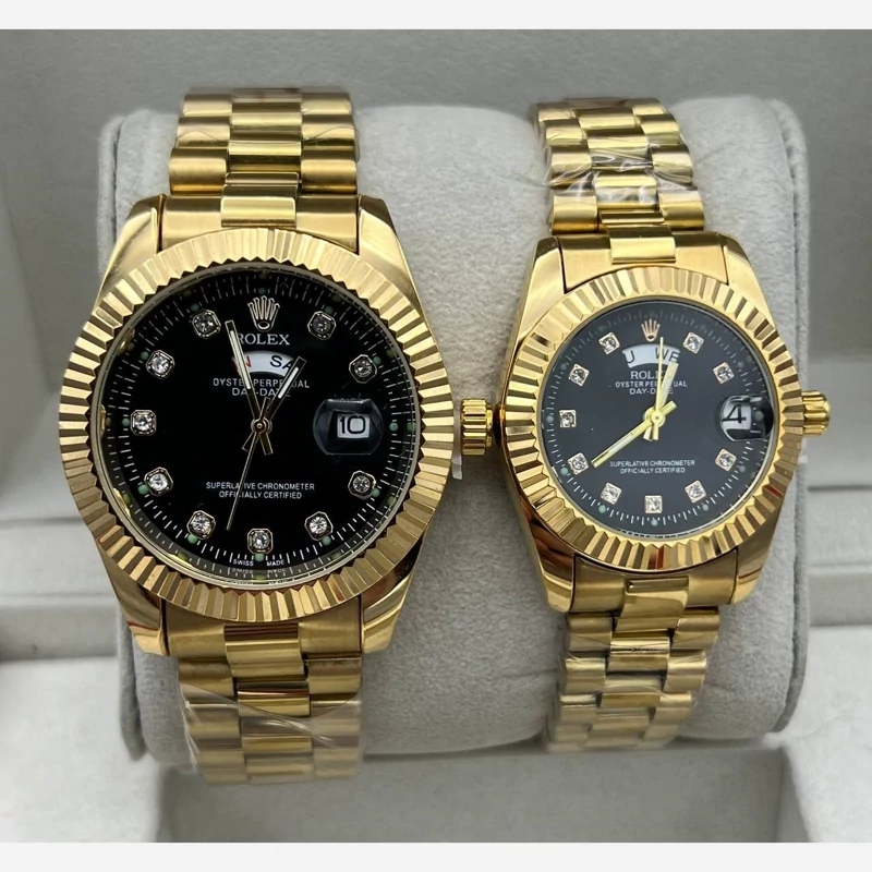 ساعت رولکس ست زنانه و مردانه طلایی صفحه مشکی قفل اصلی دو تقویمه