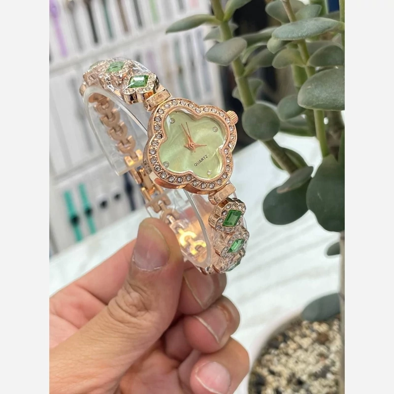 ساعت زنانه نگین رنگی سبز با گارانتی موتور