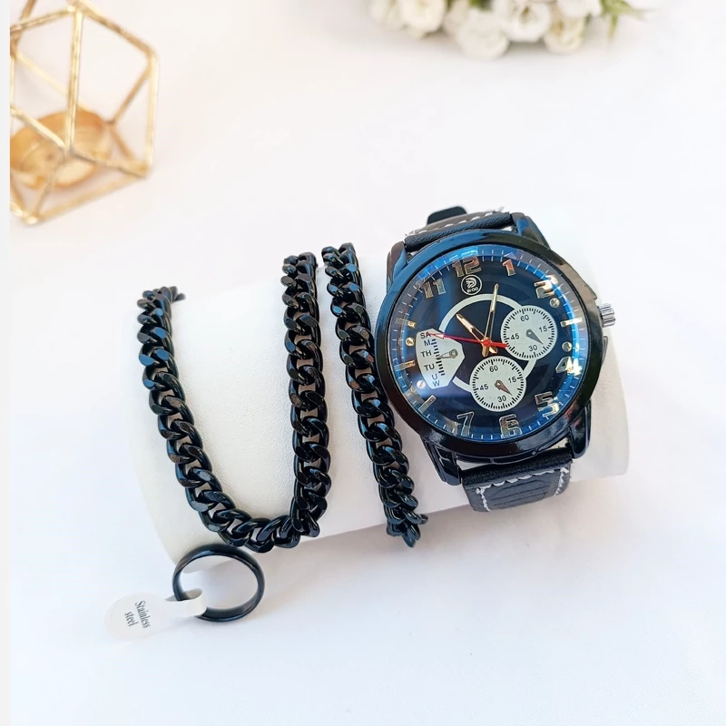 ساعت مچی مردانه دستبند انگشتر گردنبند ست کامل جعبه چوبی