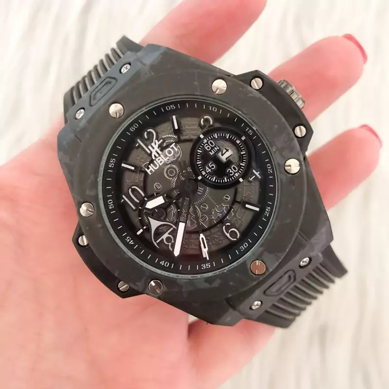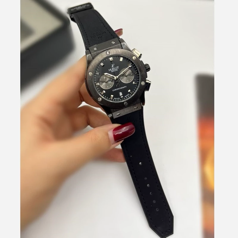 ساعت زنانه و مردانه مارک هابلوت بند مشکی صفحه مشکی