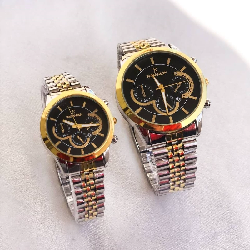 ساعت ست رومانسون دو رنگ صفحه مشکی ساده