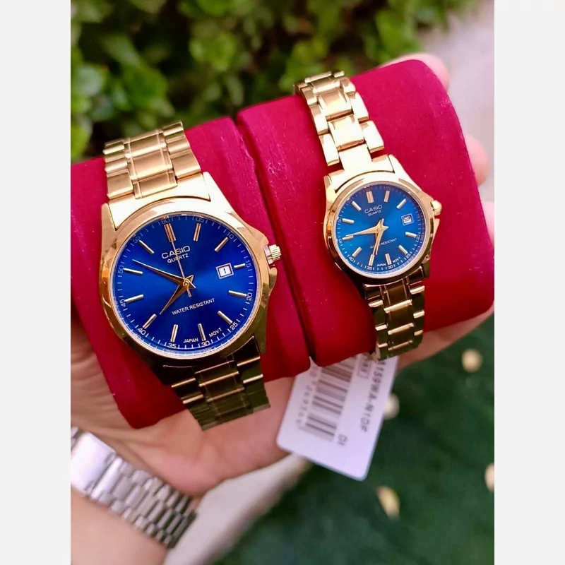 ساعت ست کاسیو طلایی صفحه سورمه ای
