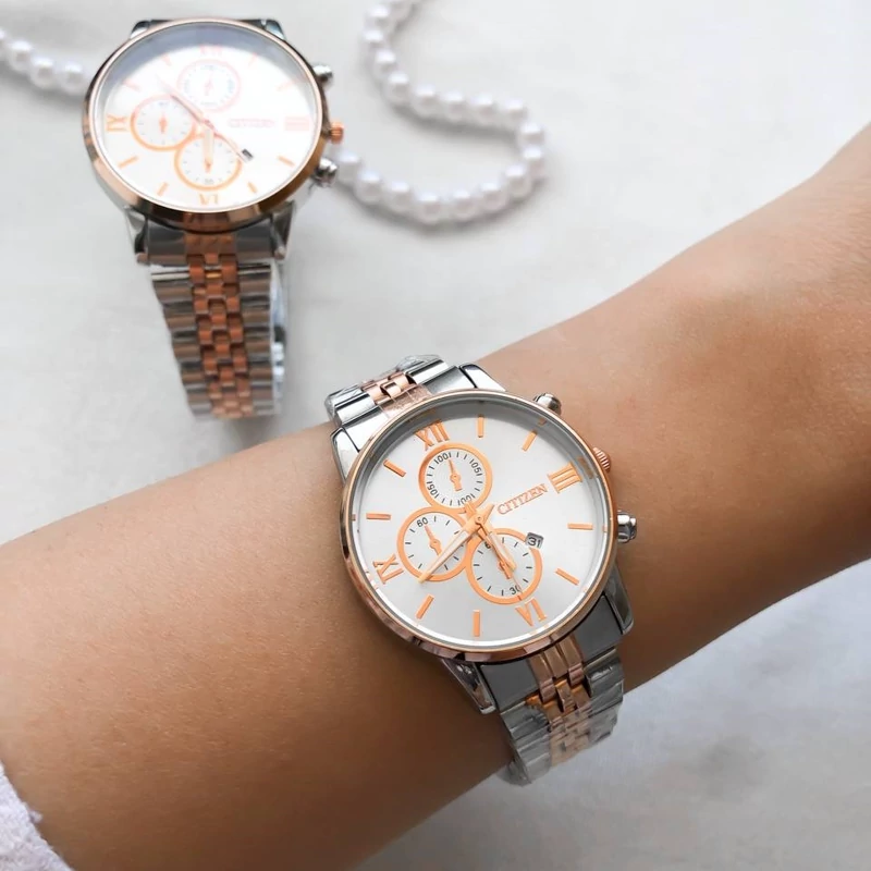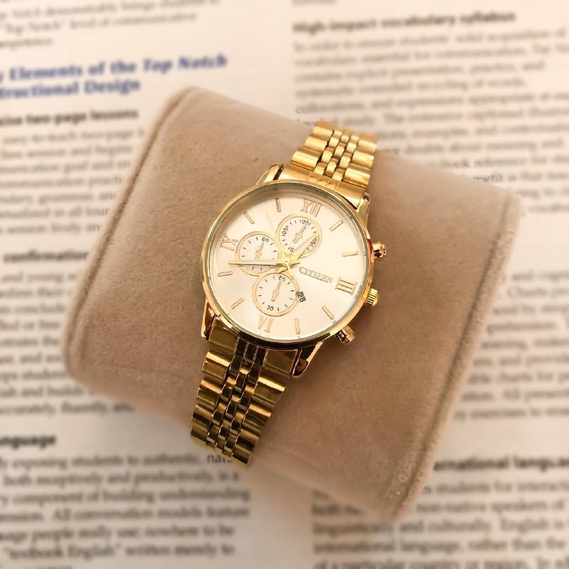 ساعت مچی زنانه سیتیزن طلایی طرح سه موتوره
