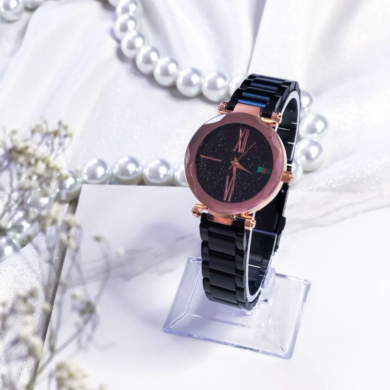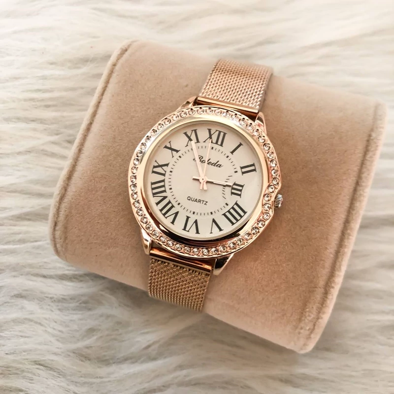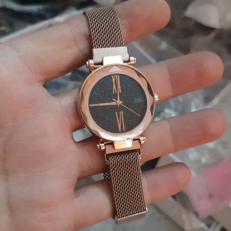 ساعت زنانه رزگلد بند مگنتی شیشه تراش دار