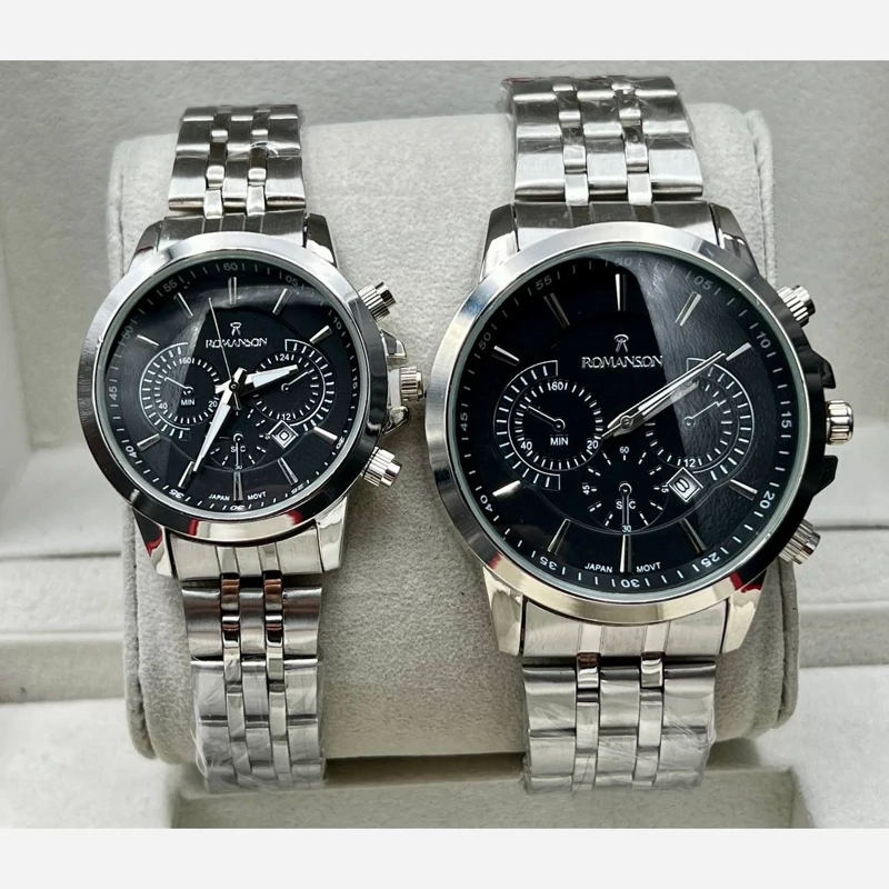 ساعت مردانه ساعت زنانه رومانسون نقره ای صفحه مشکی