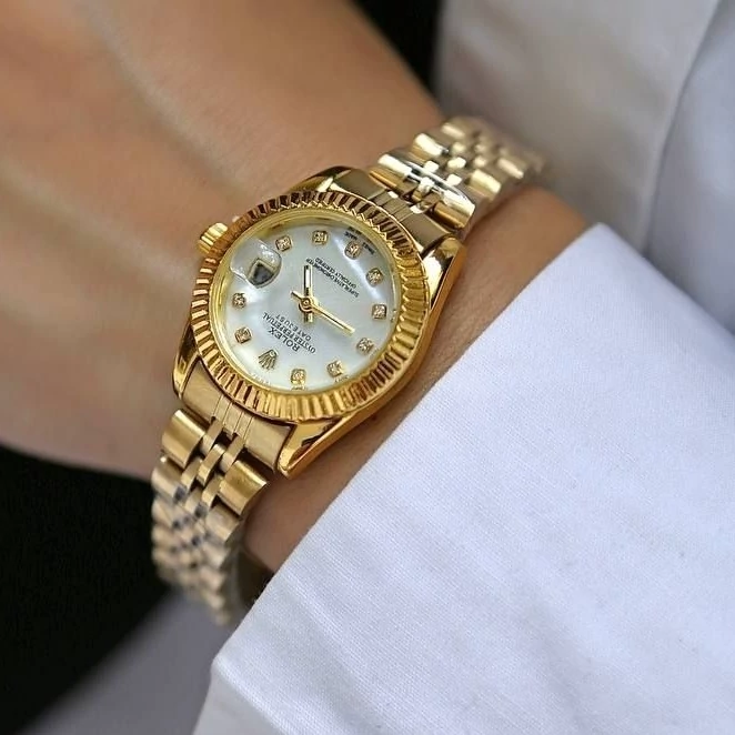 ساعت مچی زنانه رولکس طلایی صفحه سفید