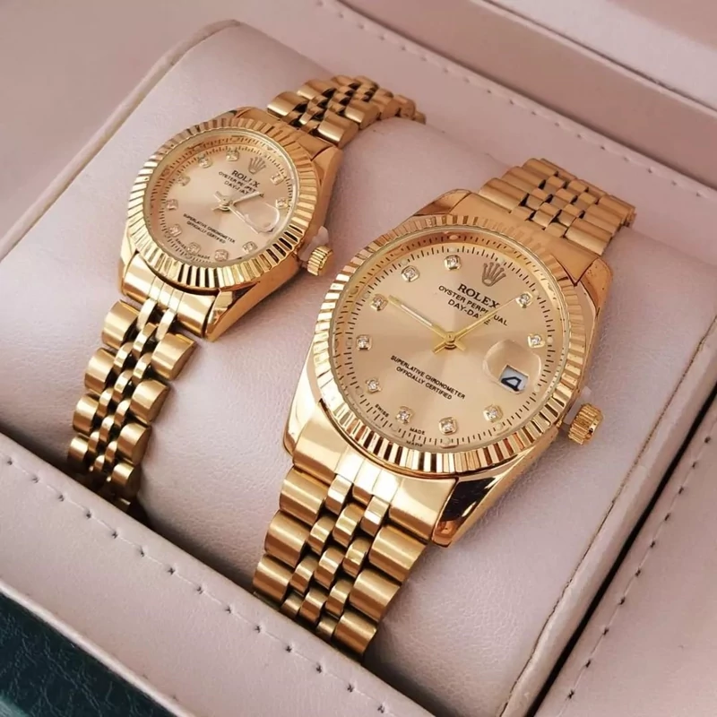 ست ساعت رولکس طلایی صفحه طلایی با گارانتی