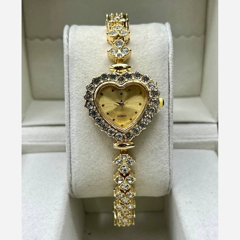 ساعت زنانه طلایی نگین دار طرح قلب