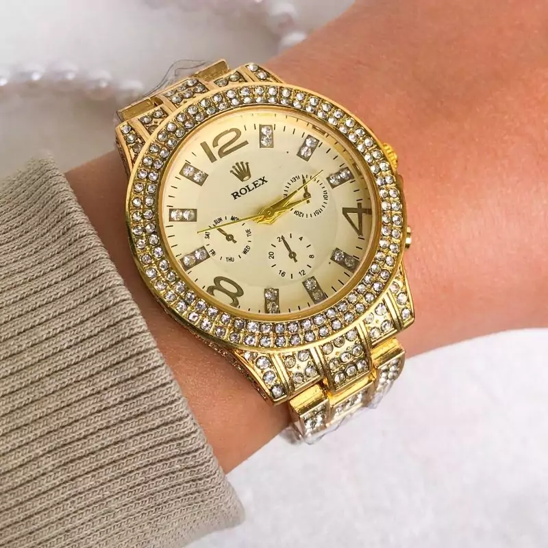 ساعت مچی زنانه رولکس فول نگین طلایی