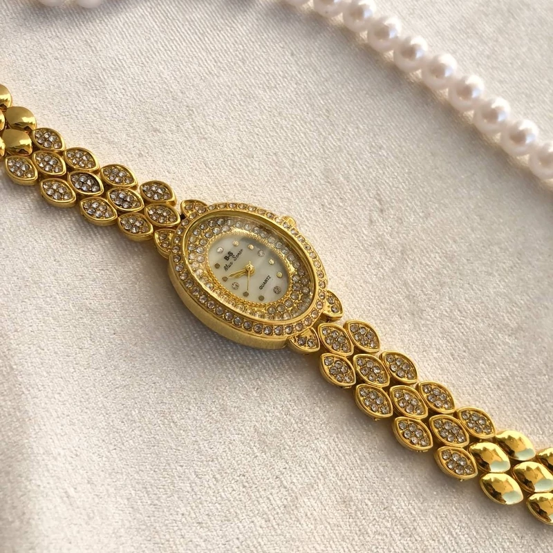 ساعت زنانه طلایی صفحه بیضی