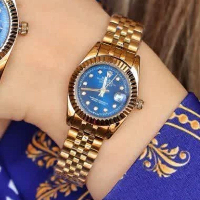 ساعت مچی زنانه رولکس طلایی صفحه سورمه ای