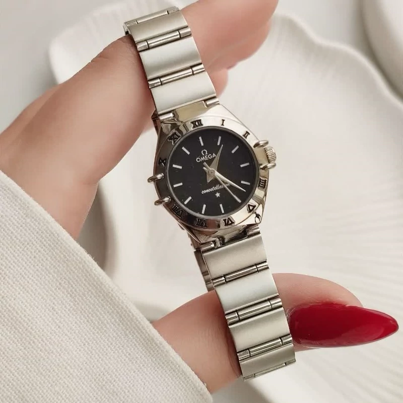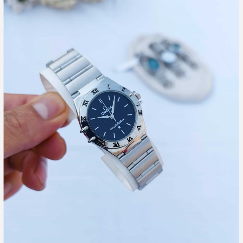 ساعت زنانه امگا نقره ای صفحه مشکی