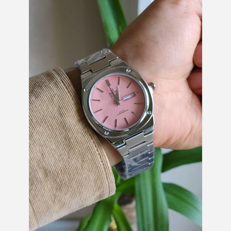 ساعت زنانه امگا نقره ای صفحه صورتی