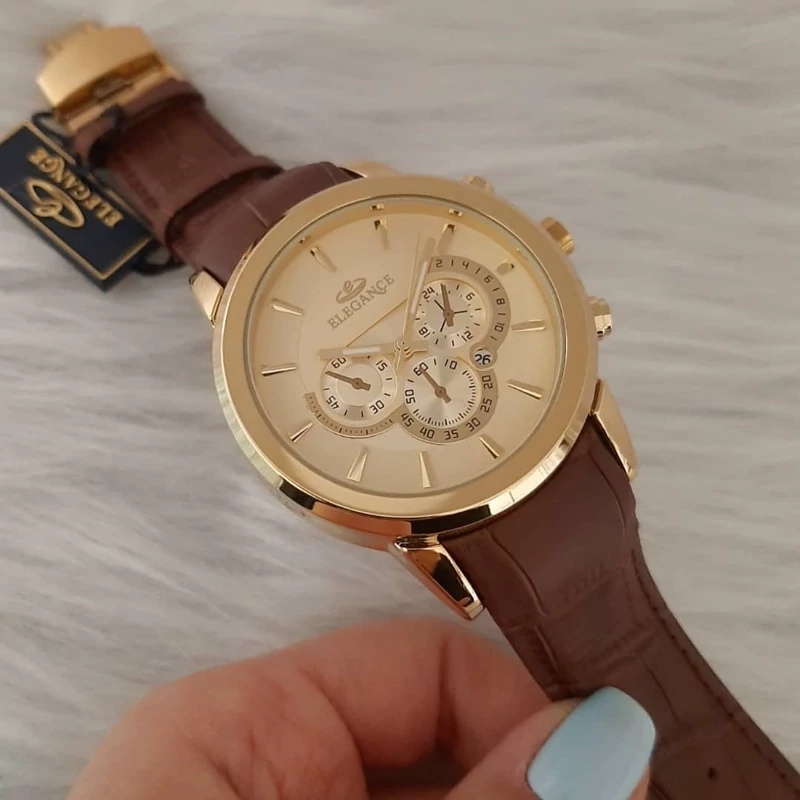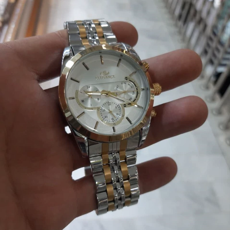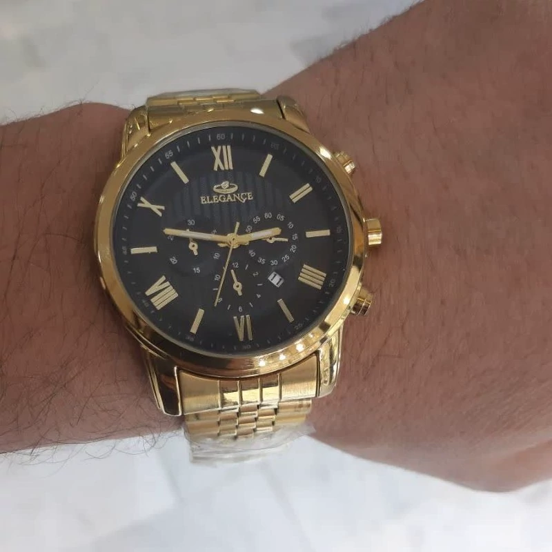 ساعت الگانس مردانه و زنانه موتور ژاپن رنگ ثابت قفل پروانه ای تک موتوره طرح سه موتوره دارای تقویم