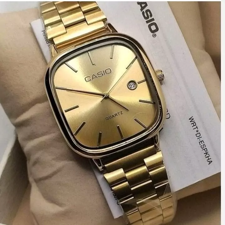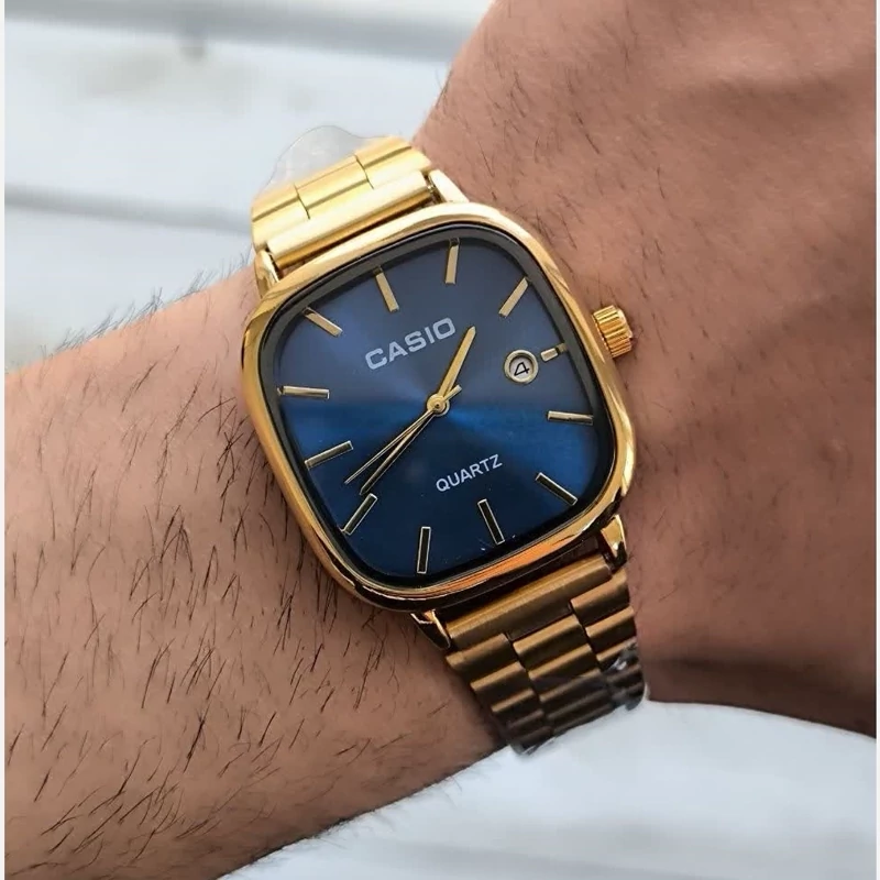 ساعت مردانه کاسیو صفحه مربع طلایی