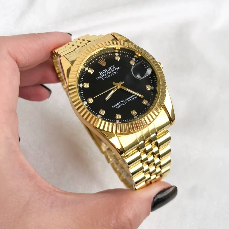 ساعت مردانه رولکس طلایی صفحه مشکی با 6ماه گارانتی موتور