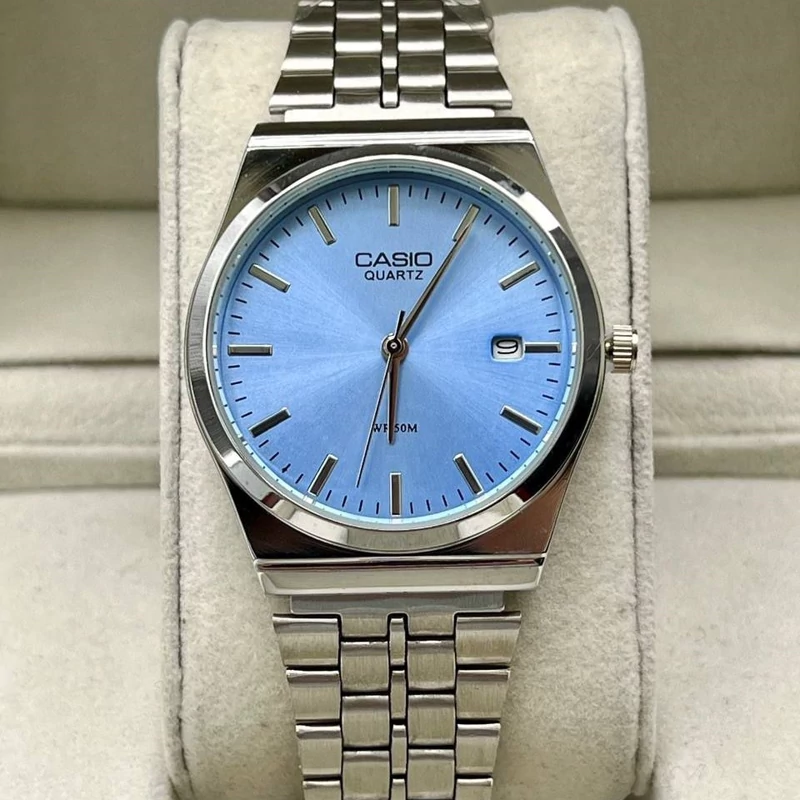 ساعت مردانه کاسیو نقره ای صفحه آبی آسمانی