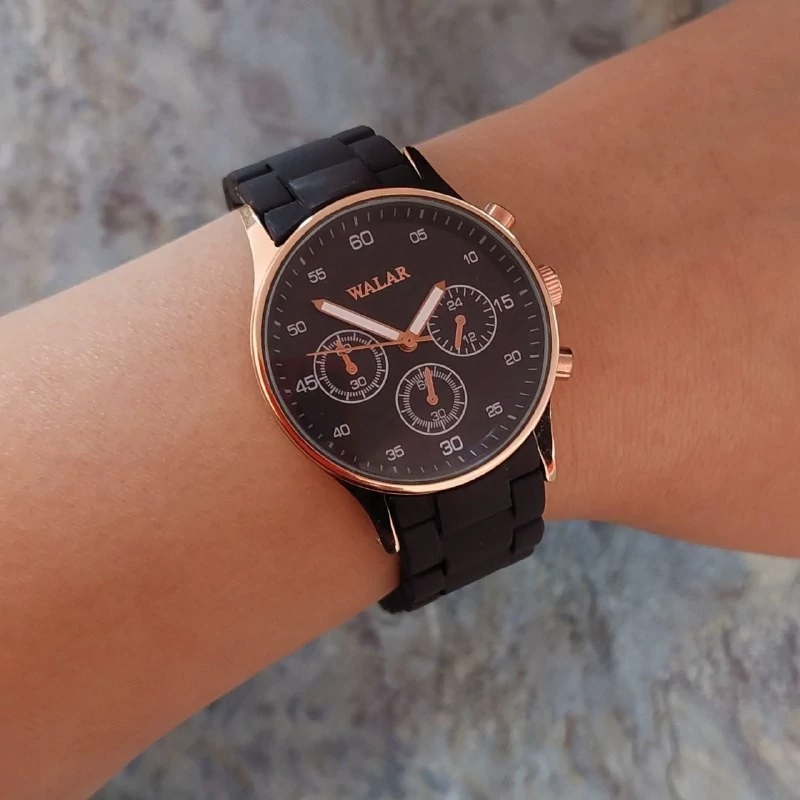 ساعت مردانه والار مشکی قاب رزگلد