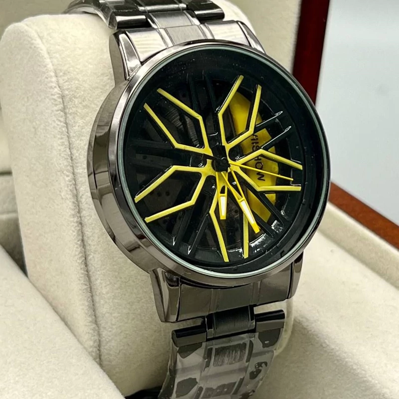 ساعت مردانه صفحه چرخشی مشکی زرد کیفیت عالی