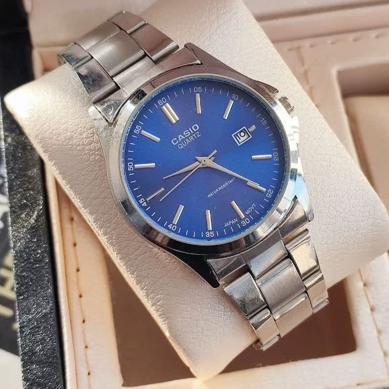 ساعت مچی مردانه کاسیو نقره ای صفحه آبی