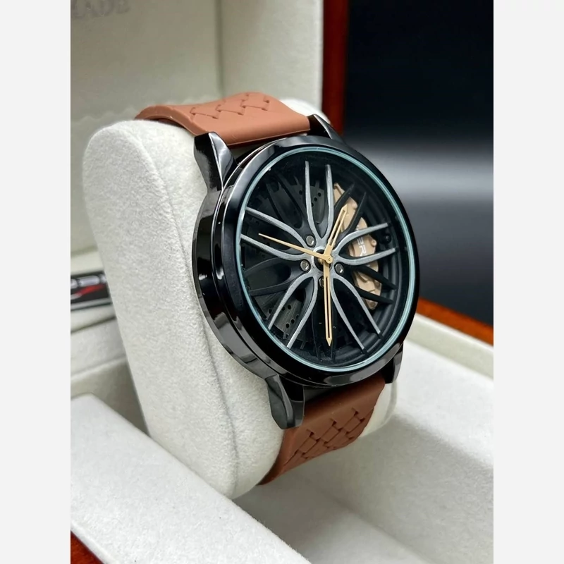 ساعت مردانه اسپرت صفحه رینگی بند پی یو قهوه ای