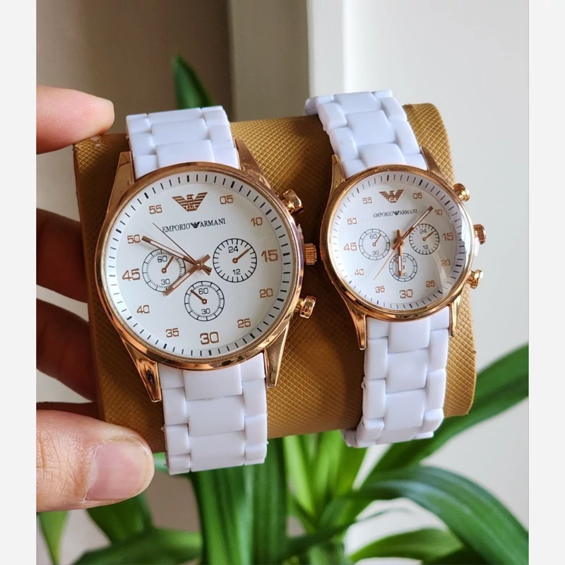 ست ساعت مچی امپریوآرمانی سفید قاب رزگلد