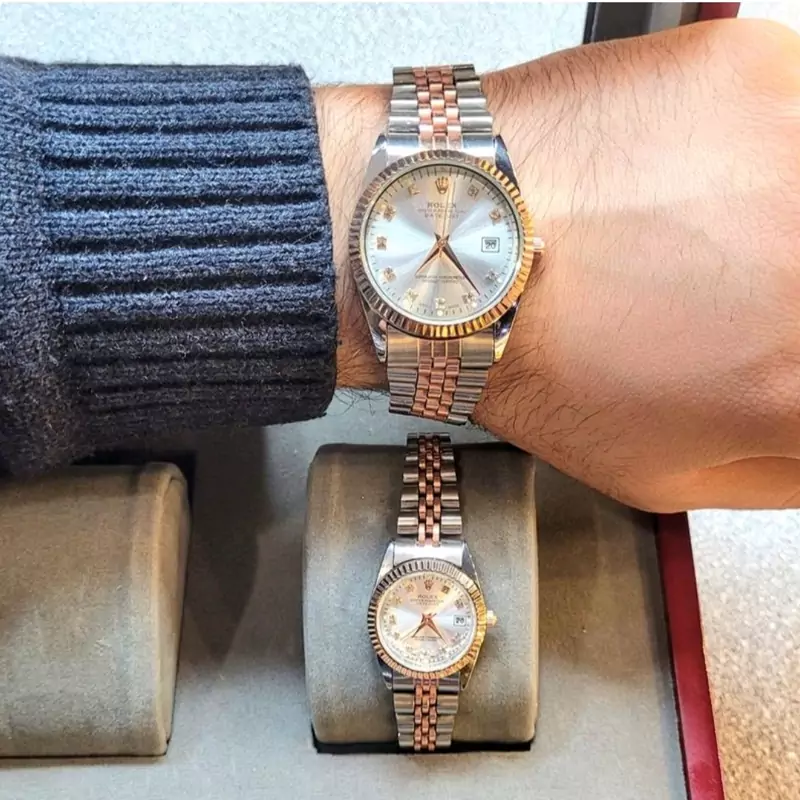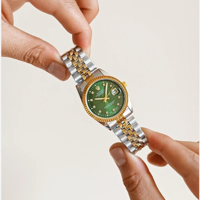 ساعت رولکس مردانه بند دو رنگ صفحه سبز قفل اصلی