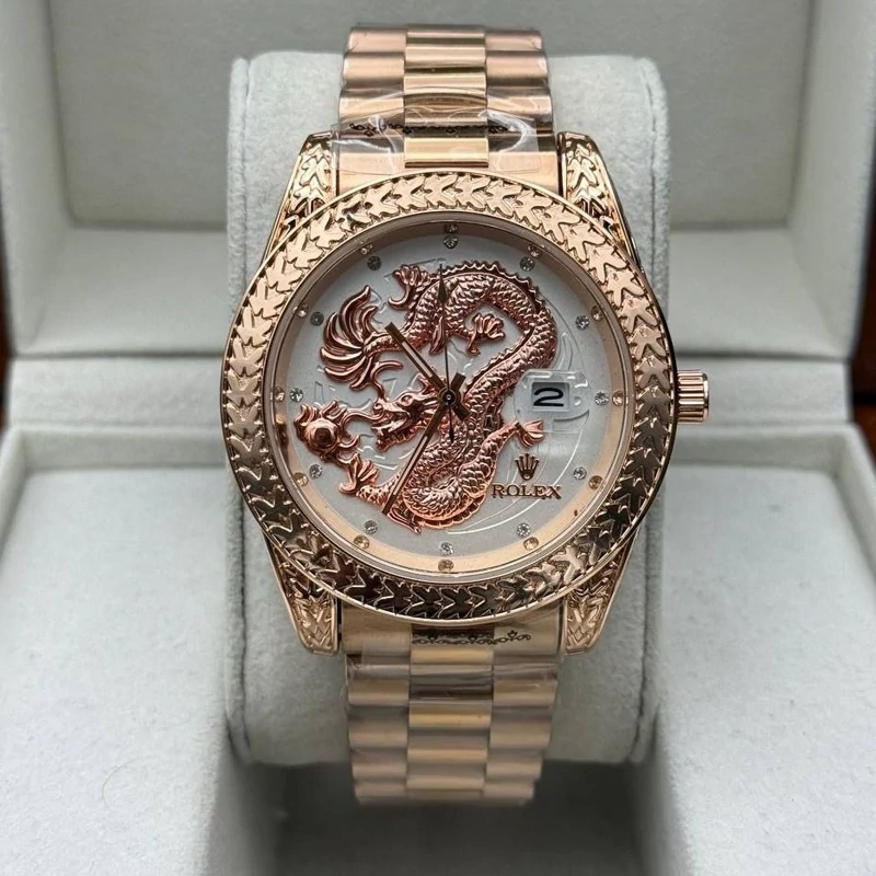 ساعت مچی مردانه رولکس رزگلد طرح دراگون