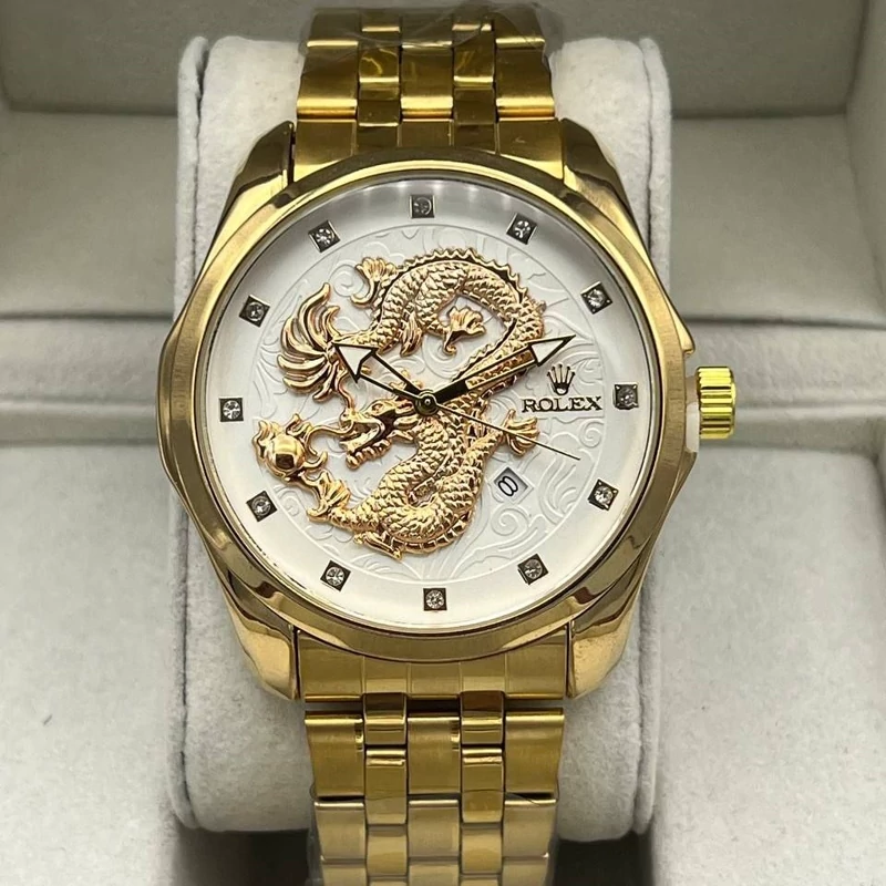 ساعت مردانه رولکس طرح دراگون طلایی صفحه سفید