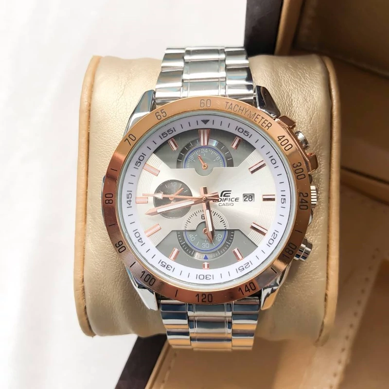 ساعت مردانه کاسیو ادیفایس نقره ای رزگلد