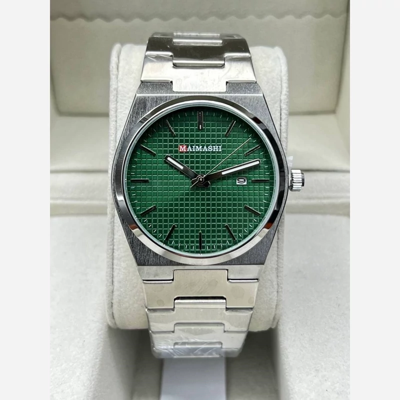 ساعت مردانه نقره ای صفحه سبز با طراحی کلاسیک