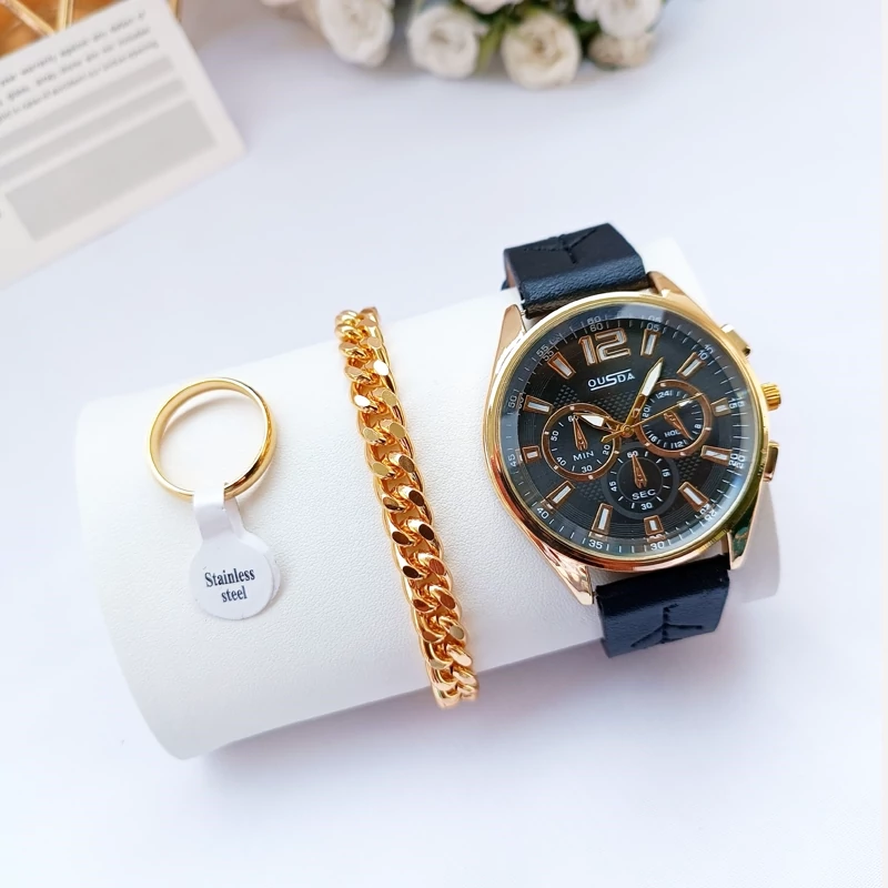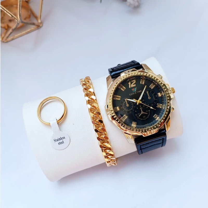 ساعت مچی مردانه دستبند انگشتر رینگی ست کامل