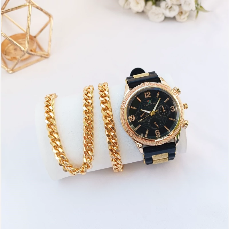 ساعت مچی مردانه دستبند ست طلایی گردنبند