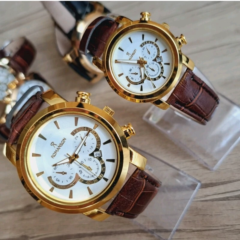 ساعت زنانه رومانسون طرح 3 موتوره بند چرم قهوه ای