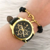 ساعت زنانه رومانسون بندچرم مشکی صفحه مشکی همراه دستبند