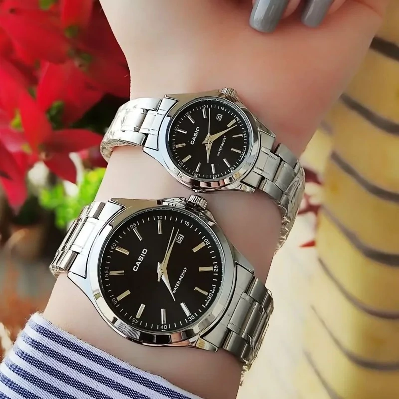ساعت ست کاسیو نقره ای صفحه مشکی